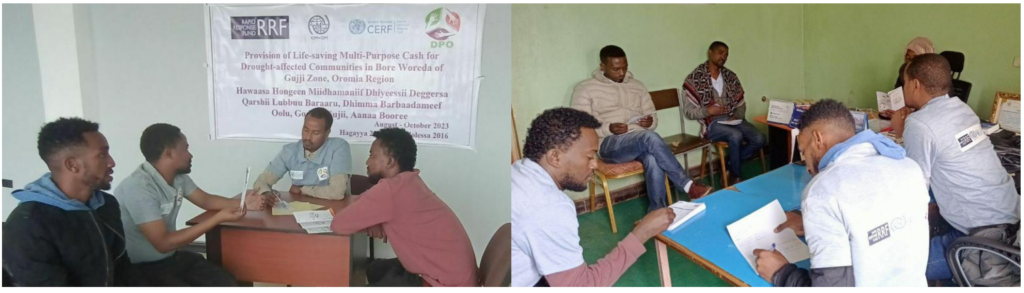 With funding from the UNCERF, DPO will support 900 drought-affected households in Bore woreda through provision of MPC. The project aims to improve the target beneficiaries’ access for cash and supplement fulfillment of their unmet needs.